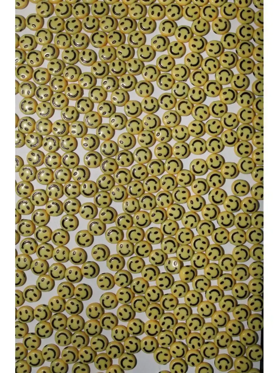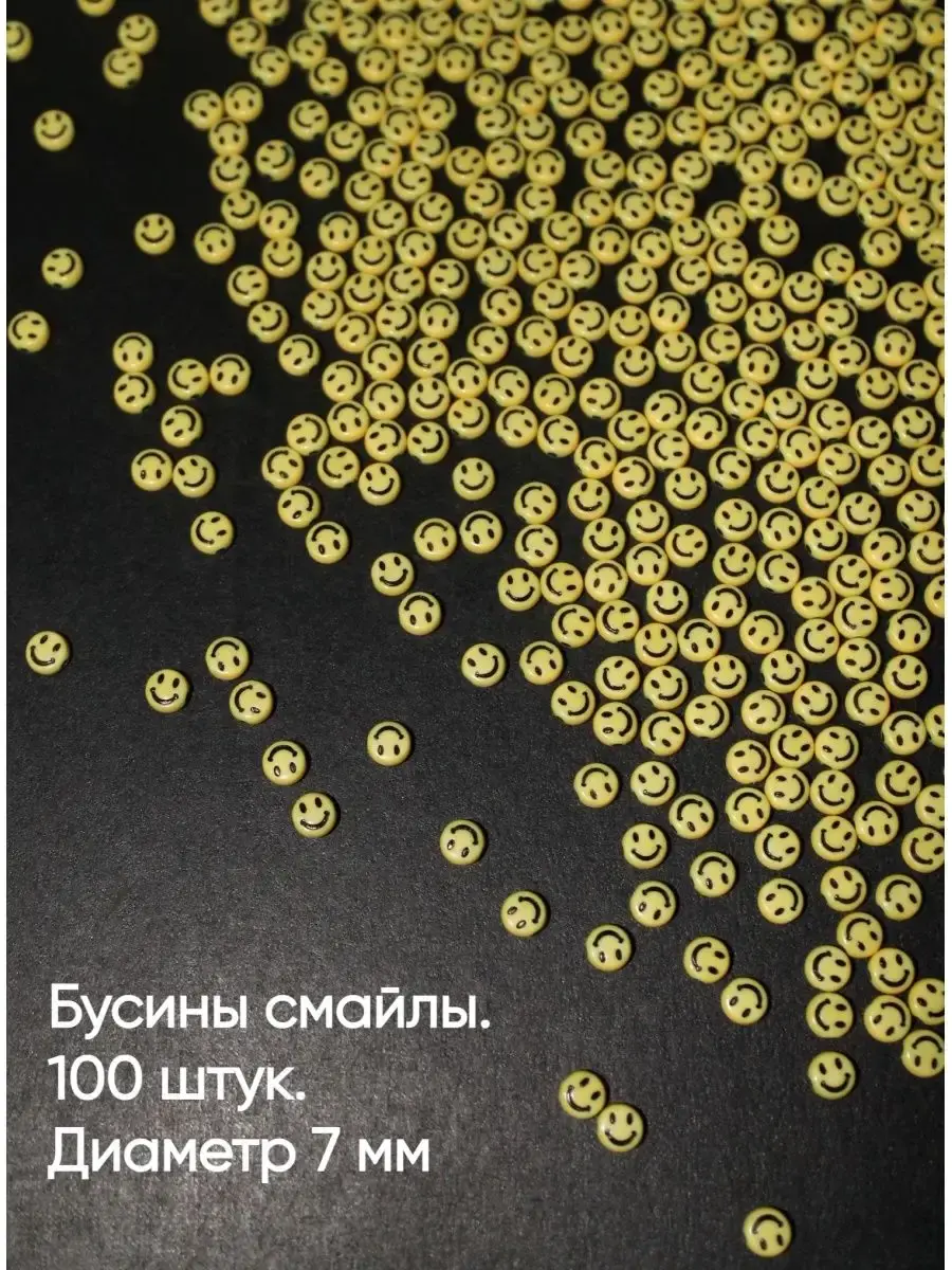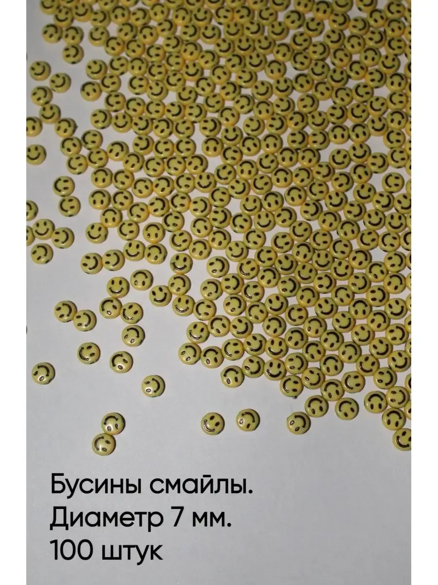 Бусины смайлы, смайлики 7мм х 4 мм для плетения браслетов, ожерелий и других украшений. Создай свое уникальное украшение.Бусины смайлы позволят создать уникальные украшения своими руками в подарок. Бусинки для рукоделия и создания браслетов тренд нашего времени, это увлекательное хобби придется по вкусу любому возрасту и скрасит ваш досуг. Отличная идея для проведения детского дня рождения, девочкам будет интересно сделать браслет своими руками и забрать его домой на память о вашей вечеринке. В наборе примерно 100 бусинок смайлов, 12 грамм.