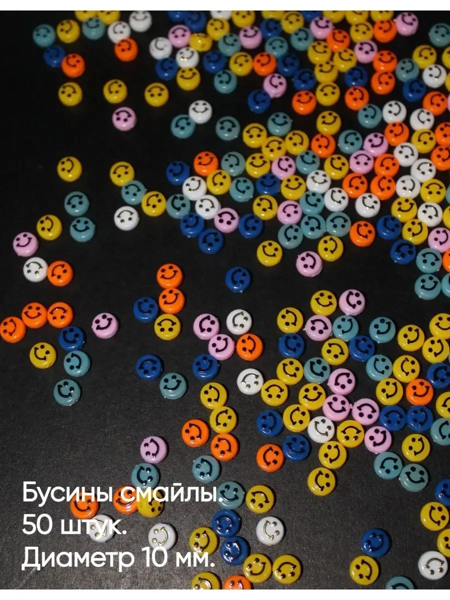 Бусины смайлы диаметром 10 мм и наборы бусин для создания украшений. С помощью набора можно создавать любые украшения - браслеты, ожерелья, серьги, чокеры. Создай свое уникальное украшение.Бусины смайлы позволят создать уникальные украшения своими руками в подарок. Бусинки для рукоделия и создания браслетов тренд нашего времени, это увлекательное хобби придется по вкусу любому возрасту и скрасит ваш досуг. Отличная идея для проведения детского дня рождения, девочкам будет интересно сделать браслет, ожерелье своими руками и забрать его домой на память о вашей вечеринке.