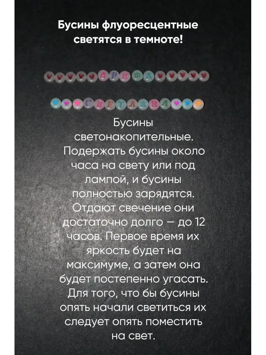 Флуоресцентные (люминофоры) бусины светятся в темноте! Бусины смайлы, бусины русский алфавит, бусины сердце, сердечки, сердца, 7мм х 4 мм для плетения браслетов, ожерелий и других украшений. Создай свое уникальное украшение.Бусины позволят создать уникальные украшения своими руками в подарок. Бусинки для рукоделия и создания браслетов тренд нашего времени, это увлекательное хобби придется по вкусу любому возрасту и скрасит ваш досуг. Отличная идея для проведения детского дня рождения, девочкам будет интересно сделать браслет своими руками и забрать его домой на память о вашей вечеринке. В наборе примерно 100 бусинок смайлов, 12 грамм.