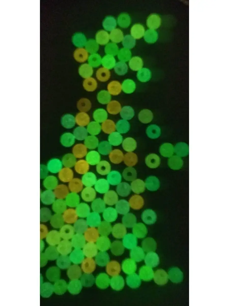 Флуоресцентные круглые бусины диаметр 6 мм для плетения браслетов, ожерелий и других украшений (светятся в темноте). Бусины светонакопительные. Подержать бусины около часа на свету или под лампой и они полностью зарядятся. Отдают они свечение достаточно долго - до 12 часов. Первое время их яркость будет на максимуме, потом будет постепенно угасать. Для того, что бы бусины опять начали светиться, их следует опять поместить на свет. Создай свое уникальное украшение. Круглые бусины в сочетании с бусинами смайлами и сердечками позволят создать уникальные украшения своими руками в подарок. Бусинки для рукоделия и создания браслетов тренд нашего времени, это увлекательное хобби придется по вкусу любому возрасту и скрасит ваш досуг. Отличная идея для проведения детского дня рождения, девочкам будет интересно сделать браслет своими руками и забрать его домой на память о вашей вечеринке.