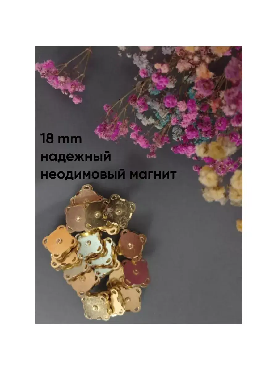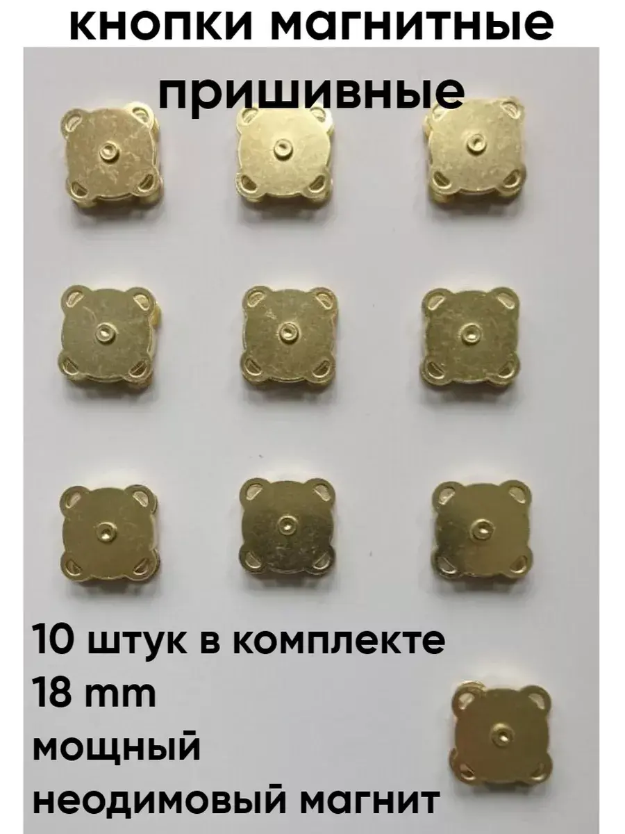 Кнопки пришивные магнитные – это фурнитура для рукоделия, которая используется при изготовлении сумок и шитья. Набор 10 шт. Размер 18 мм. Пришивные магнитные кнопки можно с легкостью установить на любую ткань. Пришиваются за ушки с 4 сторон и надежно держаться на ткани. Просто пришейте кнопку на нужное место и наслаждайтесь комфортом и практичностью. Прочный магнитный замок благодаря применению неодимового магнита так же используются как застежка для сумок. Кнопка проста в использовании, универсальная и практичная, надежная, подходит для установки на сумках, рюкзаках, пальто, куртках, кардиганах, различных текстильных изделиях.