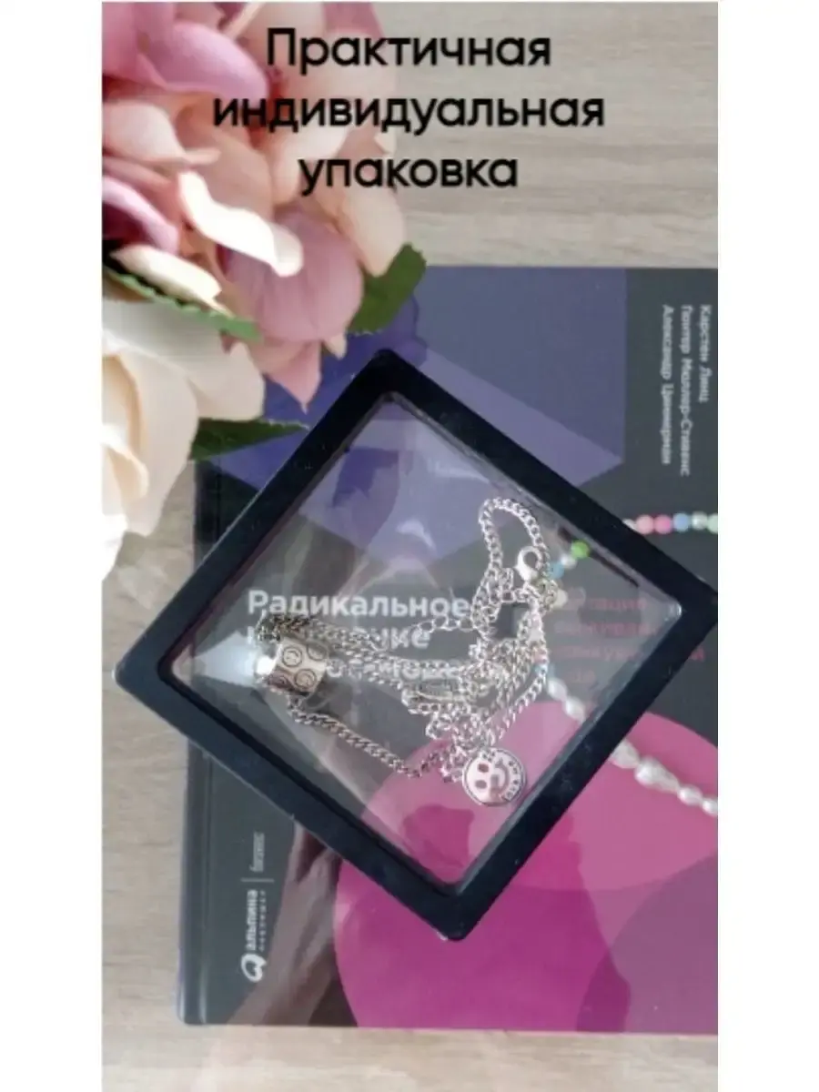 Колье упаковано в практичную индивидуальную упаковку - коробку для хранения ювелирных изделий из полиэтиленовой пленки.