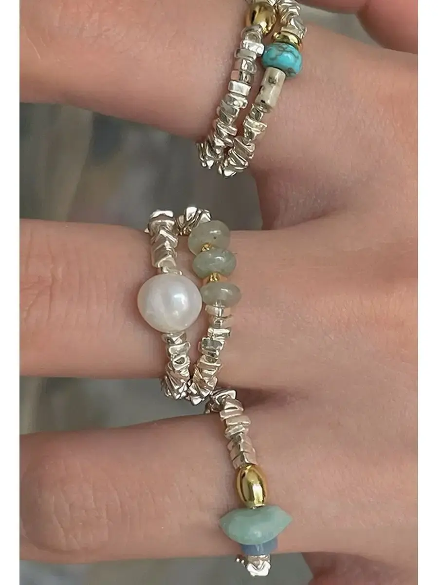 Кольцо из бусин неправильной формы с вставками из натуральных камней идеально подходит как для ежедневного ношения, так и для вечеринки. Бусины собраны на эластичную нить, что позволяет носить кольцо на любом пальце, не зависимо от размера. Гармонично смотрится на руке набор из 3-5 колец этой серии. Каждое кольцо упаковано в практичную индивидуальную упаковку для хранения бижутерии.
