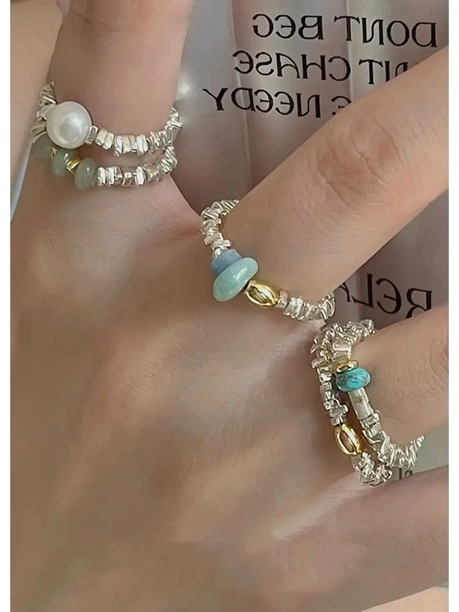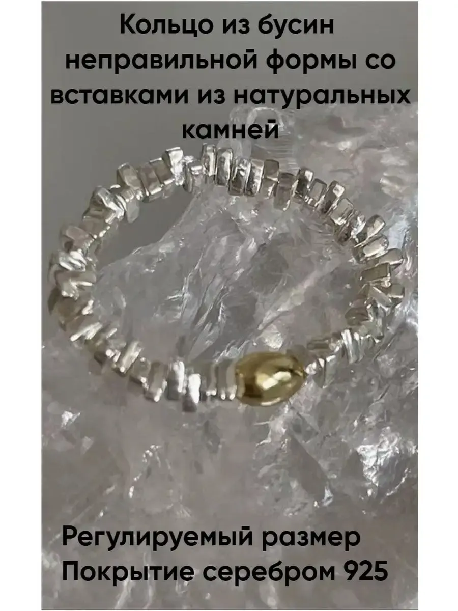 Кольцо из бусин неправильной формы с вставками из натуральных камней идеально подходит как для ежедневного ношения, так и для вечеринки. Бусины собраны на эластичную нить, что позволяет носить кольцо на любом пальце, не зависимо от размера. Гармонично сочетается на руке набор с другими кольцами из этой серии. Каждое кольцо упаковано в практичную индивидуальную упаковку для хранения бижутерии.