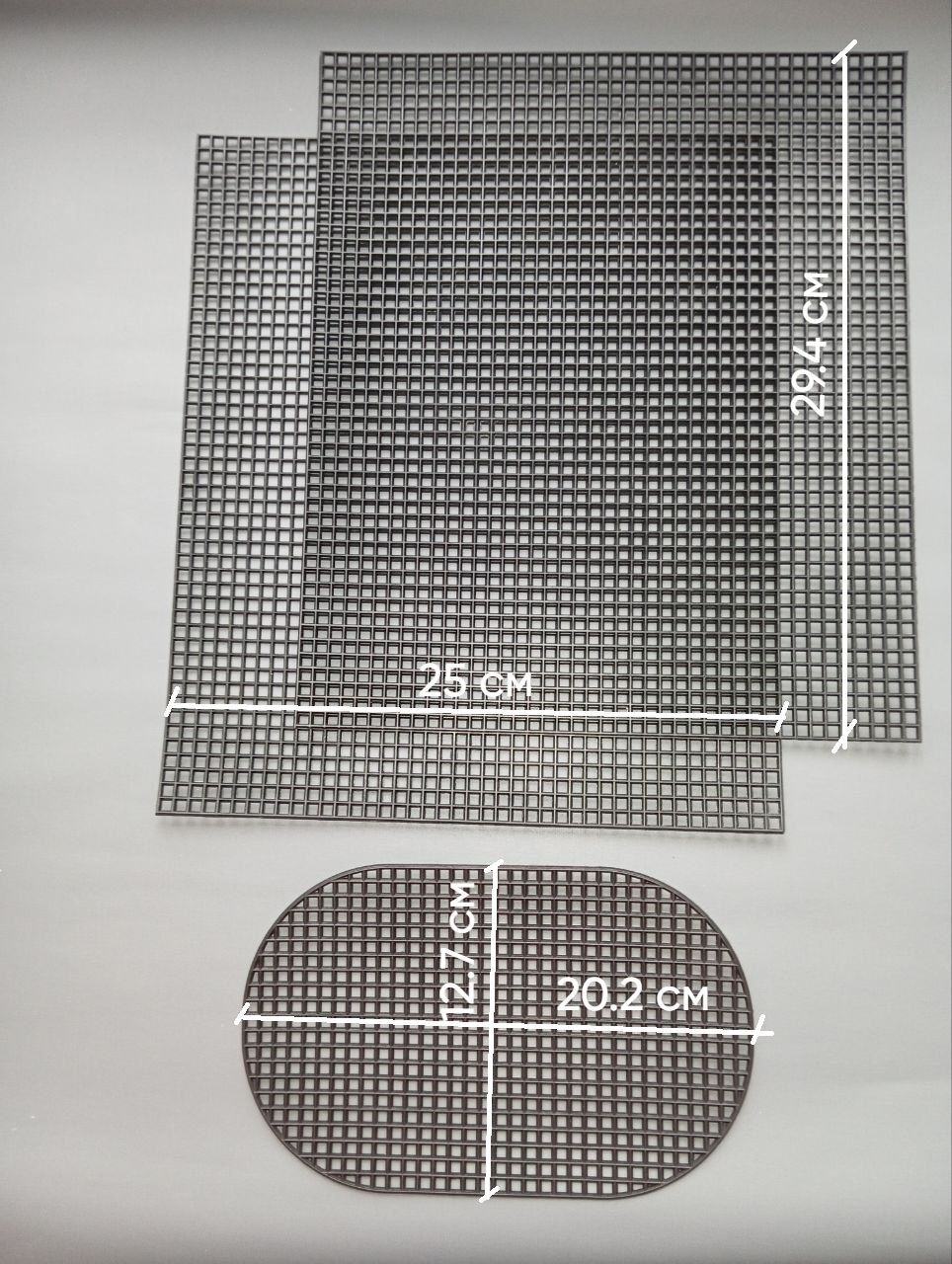 Этот набор состоит из пластиковой канвы размером 25x29.4 см, которая имеет однотонную разметку. Также в комплекте есть все необходимое для создания сумки - ручки для сумки, магнитная кнопка, шильдик HAND MADE, ножки для сумки.