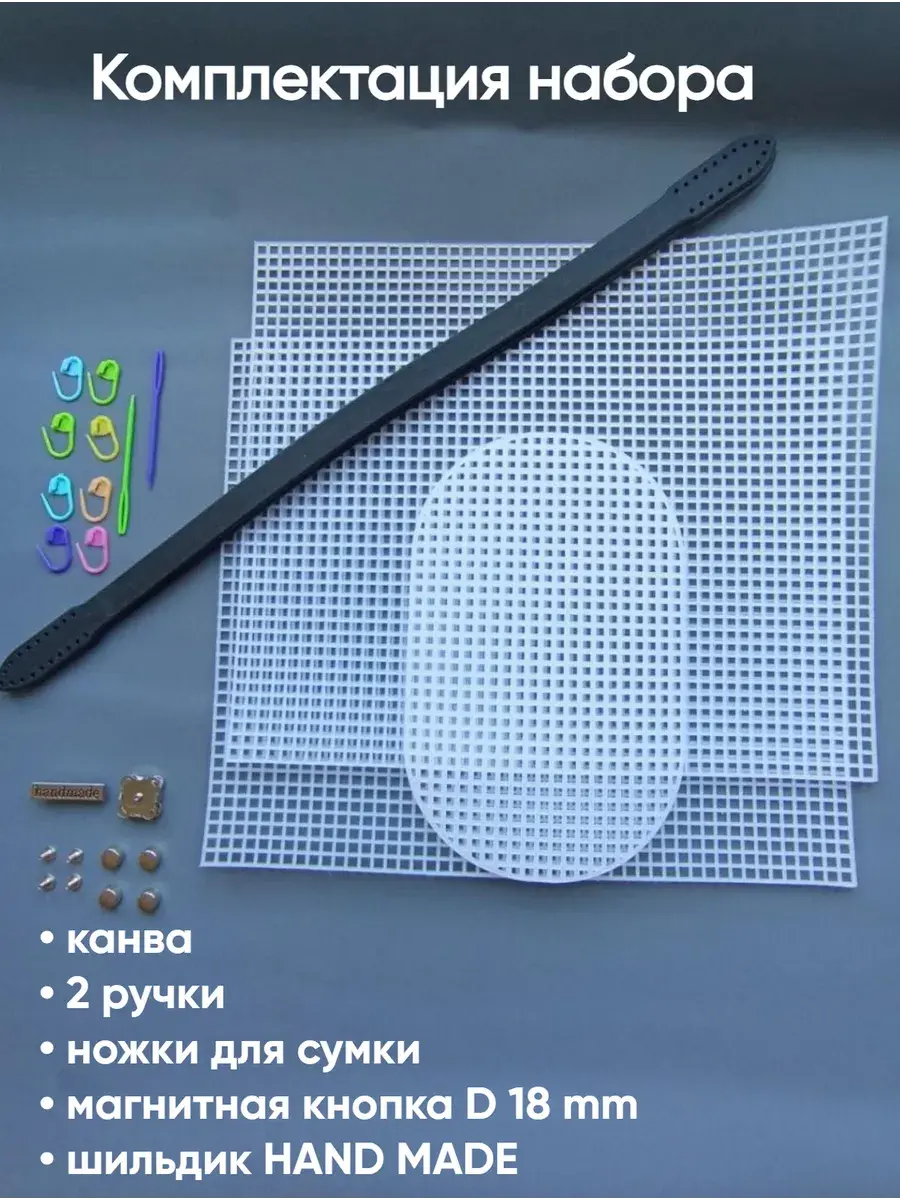 Набор для сумки пластиковая канва и фурнитура - это идеальный выбор для тех, кто хочет создать свою собственную уникальную сумку. В наборе вы найдете все необходимое: прочную пластиковую канву, удобную в работе и долговечную, а также полный комплект фурнитуры, включая ручки, застежки и другие детали. С этим набором вы сможете воплотить в жизнь свои дизайнерские идеи и изготовить сумку, которая будет отражать ваш индивидуальный стиль. Набор подходит как для начинающих, так и для опытных мастериц, желающих добавить в свой гардероб эксклюзивный аксессуар.