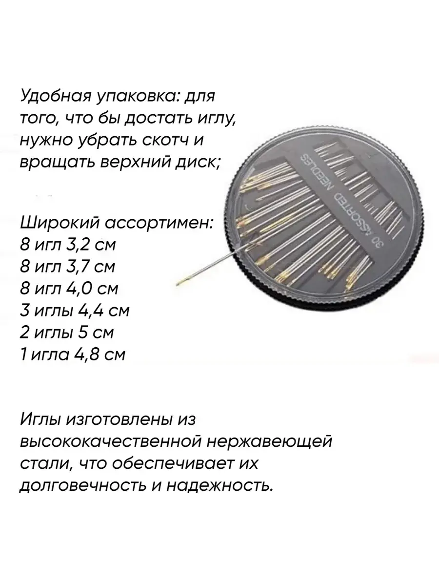 Набор швейных игл на диске 30 штук от DK STYLE – идеальный выбор для любителей вышивки, шитья и рукоделия. Этот набор включает в себя иглы разного размера и типа, что делает его универсальным инструментом для любых проектов. Все иглы изготовлены из высококачественной нержавеющей стали, что обеспечивает их долговечность и надёжность. Благодаря этому набору вы сможете легко и быстро выполнять сложные работы, сохраняя при этом высокое качество исполнения. Этот набор – отличный подарок для начинающих и опытных швей, который поможет вам в достижении идеальных результатов в ваших рукодельных проектах.