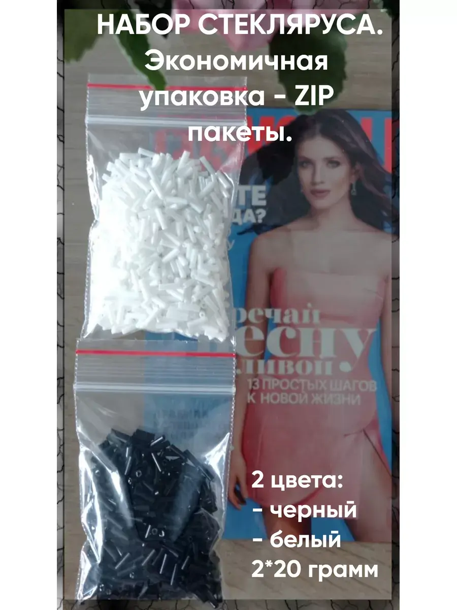 Набор стекляруса для рукоделия. Бисер стеклярус отлично подойдет для вышивания, для бисероплетения и рукоделия. С его помощью можно создать различные поделки и украшения. В упаковке 2 цвета стекляруса - белый матовый и черный по 20 грамм. Набор стекляруса для изготовления украшений прекрасный подарок ребенку, подруге на праздник или просто так. Бусинки для рукоделия и создания украшений - тренд нашего времени. Это увлекательное хобби придется по вкусу любому возрасту и скрасит ваш досуг. Отличная идея для проведения детского дня рождения, девочкам будет интересно сделать браслет своими руками и забрать его домой на память о вашей вечеринке.